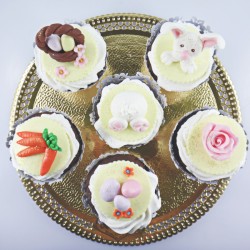 Cupcakes são pequenas delícias individuais que encantam os sentidos. Cada cupcake consiste numa massa fofa e saborosa, com sabor a chocolate, ovo ou noz, entre outros. A cobertura que pode ser em creme manteiga ou chantilly é depois personalizada em pasta de açúcar ou folha de hóstia ao gosto do cliente. Decorados com graciosidade, os cupcakes podem apresentar uma variedade de enfeites de acordo com o tema pretendido, totalmente personalizado. Implica encomenda com pelo menos 3 dias de antecedência devido à necessidade de produção de certos itens. Mantém as suas propriedades pelo menos até 3 dias após a sua confeção. Existe sempre a possibilidade de acréscimo de bolo dedicado ao tema, sendo que aconselhamos um mínimo de cerca de 100grs por pessoa.