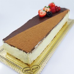 Imagine duas estaladiças camadas de massa folhada e duas fofas camadas de pão-de-ló entremeadas com doce de ovos artesanal e duas camadas ultra-finas duma suculenta mousse especial de baunilha para logo depois cobrir-se com mousse de chocolate e chocolate crocante e estaladiço!