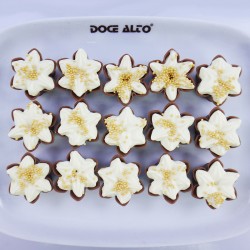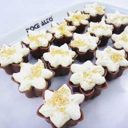 Bombom em formato de flor com recheio de chocolate de leite e avelã. Mantém as suas propriedades pelo menos 45 dias após a sua confecção. Não necessita de frio mas deve ser conservado em local fresco e seco. O preço indicado é para 1/4 kg.