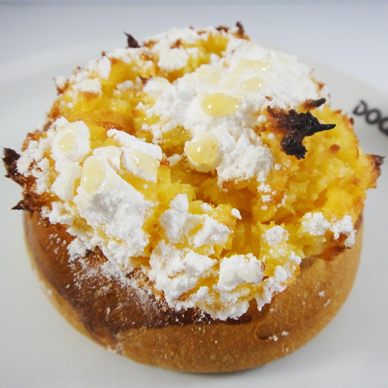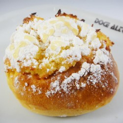 Pastel de massa fôfa recheado com creme de ovos polvilhado com açúcar.