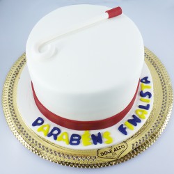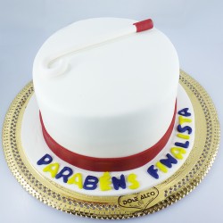 Um bolo para finalistas é uma expressão doce de conquista e celebração para os graduados. A massa, pode apresentar sabores clássicos como pão de ló, red velvet entre outras, sempre ao gosto do cliente. A cobertura, frequentemente em pasta de açúcar ou creme manteiga, serve como tela para comemorações temáticas. A decoração pode incluir símbolos de graduação, como diplomas, capelos, fitas, logótipos da faculdade etc., sempre personalizado. Implica encomenda com pelo menos 3 dias de antecedência devido à necessidade de produção de certos itens, sendo que aconselhamos um mínimo de cerca de 100grs por pessoa. Mantém as suas propriedades pelo menos até 3 dias após a sua confeção. Existe sempre a possibilidade de acréscimo de cupcakes dedicados ao tema.