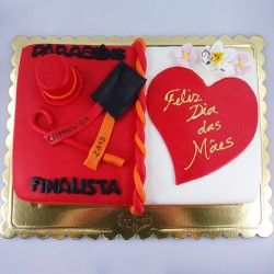 Bolo Artístico 3D confecionado com a máxima atenção ao detalhe e que pode ser totalmente personalizado a gosto do cliente (cores, objetos, mensagens a incluir, entre outros pormenores). O Tema é o Dia da Mãe. Implica encomenda com pelo menos 3 dias de antecedência devido à necessidade de produção de certos itens. Mantém as suas propriedades pelo menos até 3 dias após a sua confeção. Existe sempre a possibilidade de acréscimo de cupcakes dedicados ao tema, sempre sob consulta.