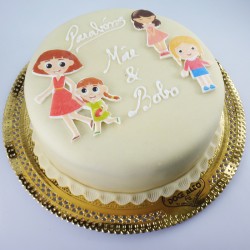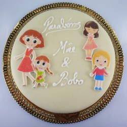 Bolo Artístico 3D confecionado com a máxima atenção ao detalhe e que pode ser totalmente personalizado a gosto do cliente (cores, objetos, mensagens a incluir, entre outros pormenores). O Tema é o Dia da Mãe. Implica encomenda com pelo menos 3 dias de antecedência devido à necessidade de produção de certos itens. Mantém as suas propriedades pelo menos até 3 dias após a sua confeção. Existe sempre a possibilidade de acréscimo de cupcakes dedicados ao tema, sempre sob consulta.