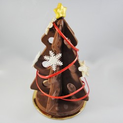 Árvore artística de Natal feita em chocolate de leite, branco e negro belga de altíssima qualidade.